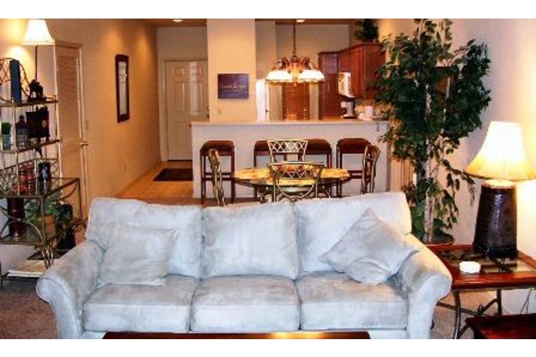 This 3 bedroom and 3 bathroom condo features 1 king bed and 3 queen beds. There is a queen sleeper sofa. This condo is decorated in modern decor, and is open so that you have a lot of space. The kitchen is fully furnished for all your dining needs. Because this condo is located within a resort, you don't have to go far to find fun.Surrounding Description