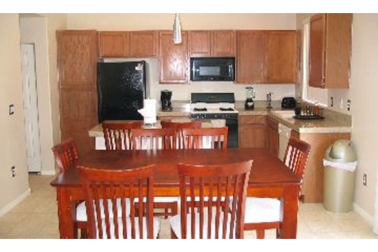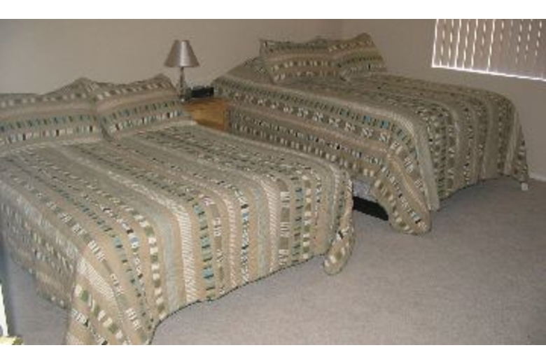 The 2nd bedroom has 2 double beds, cable TV, and closet, the 3rd bedroom has 2 twinbeds, cable TV and closet , both room has access to a large full bathroom with tub,shower, and double sinks. The large open loft has a full size pool table, 2 king chairs, and a large cable TV. The Family room has a cherrywood entertainment center with a big screen flat panel TV andplenty of seating for you and your quests. The large open fully stocked kitchen has everything you need for you and your guests to eat and cook with, theres also a centerbar with 2 bar stools and a dinning room table with seating for 8 people. The yard has a large sparkling heated pool and spa, 6 chair table, and lounge chairs. Some other amenities in this home are a washer, dryer, 2 car garage, wireless internet access.Surrounding Description