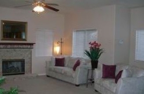For entertainment, the living room of this vacation house in Las Vegas for 6 has TV, cable TV, satellite TV and DVD player. Snuggle up by the cozy fireplace during the winter months with someone special or just chit chat with your group while sipping your favorite drinks. Your beloved pets are more than welcome at this Las Vegas pet friendly house rental.