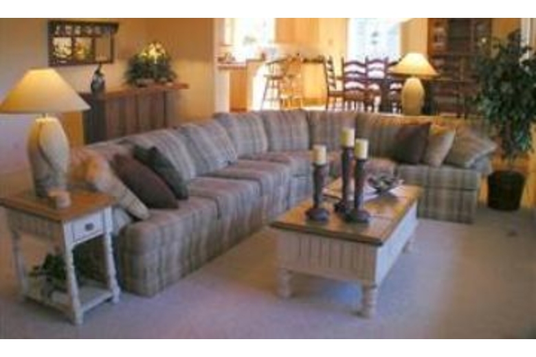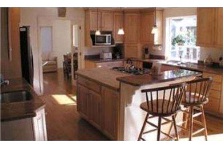 Come have a terrific time while staying in this four bedroom and three bathroom home. The spacious living room has comfortable seating, a television, a wet bar, mini refrigerator, and a wood burning fireplace. The dining room has a large wood table that will seat eight guests. The up to date kitchen is fully equipped and has a large kitchen island. Fourteen guests will sleep peacefully on the bedding provided, which consists of one king bed, one queen bed, four twin beds, and three sofa sleepers. The master bedroom also has a wet bar and mini refrigerator for your convenience. Enjoy the wooded view as you relax in the private hot tub. Guests also have use of the private beach just down the road.Surrounding Description