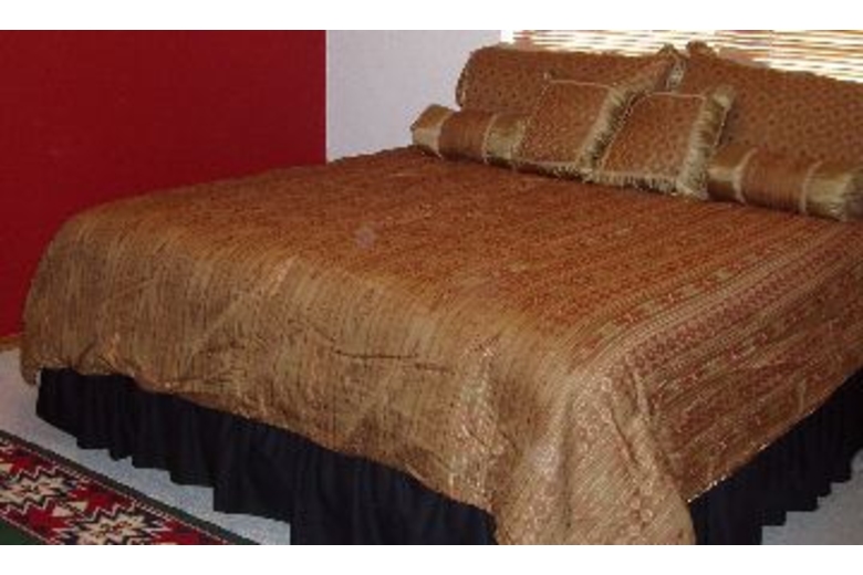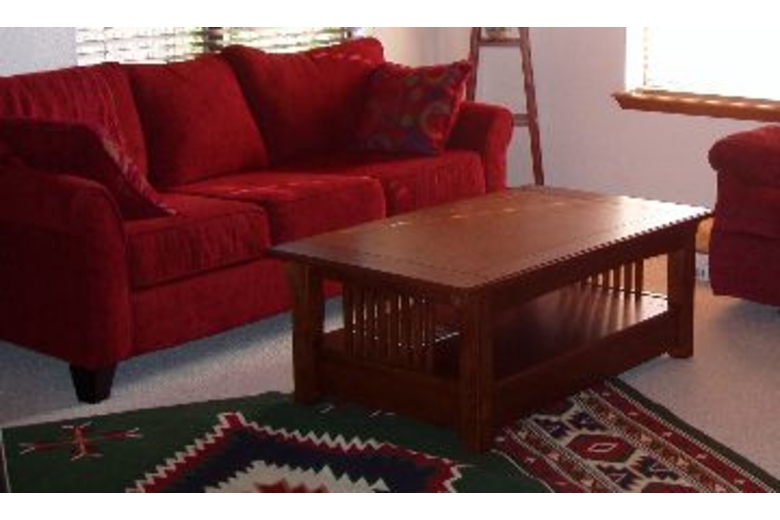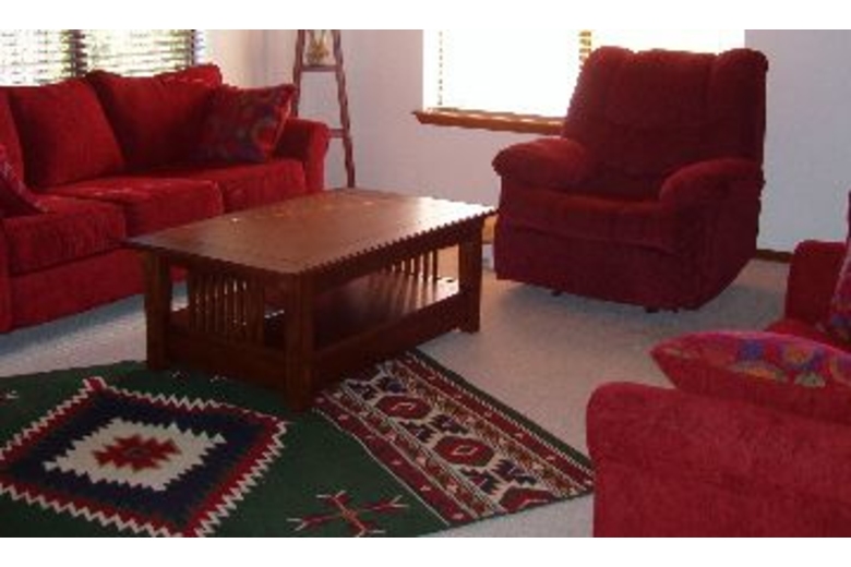 We have a wireless or computer port in the master bedroom, so bring your laptop. Two televisions, one in the front room and one in the master bedroom, both have built in DVD and VCR. Full sized washer and dryer in the garage.Surrounding Description