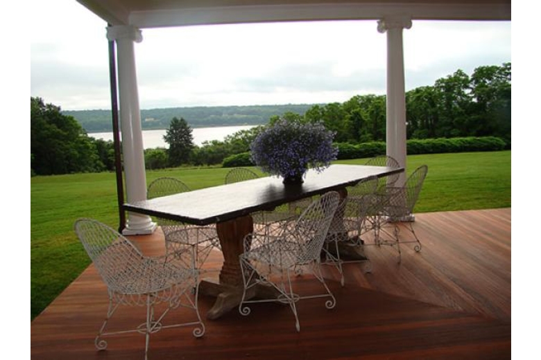 Arrowfield is an elegant Hudson River Estate built in the 1930's. The house is in pristine condition with all original details. There are seven fireplaces, large double tiered entrance hall, 100 ft wrap around porch overlooking the river, and 60 ft Olympic size pool to name a few features. The house is furnished with antiques and art from all over the world.There are rolling lawns and mature amazing trees. There are very few private homes that have access to the riverfront. Arrowfield's property line is the river's edge. There is a winding path down to the beach front. The house is in the middle of twelve acres with a sixty acre estate to the right so the feeling is one of total seclusion even though the village is a five minute walk away. Elegant and grand but so comfortable and peaceful - perfect for a family vacation, wedding, or special occasion. Situated on 12 acres on the Hudson in the heart of the Hudson Valley, Arrowfield welcomes celebration and relaxation as your private memorable retreat. It is a dreamy place.