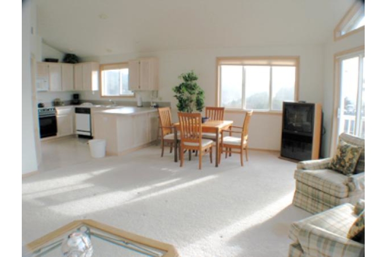 The capacious living room of this Lincoln City vacation house showcases designer furnishings. It is open and airy. The views that you will get from your cozy sofas are stunning. It features a large screen TV, DVD, VCR and high speeds internet service, so you can get away to the beach and still be connected and do business if need arises. A well equipped, modern kitchen will take care of your culinary requirements.