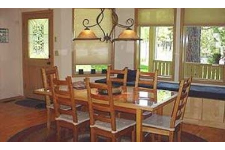 This spacious single level home with 3+ bedroom, 2 bath, sleeps 7 and is nicely landscaped yard with lawn, courtyard and deck with view of the forest. Large screen television in the den an open living, dining area high speed Internet access and a double car garage.Surrounding Description