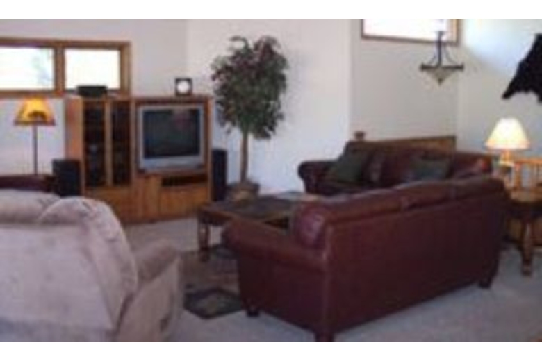 This beautiful home features 1 king, 1 queen, 1 set of bunks, 1 twin/double bunk and 1 queen hideaway bed in the den. There are 4 tvs and 4 vcrs. The kitchen is fully equipped and has a washer and dryer. The deck is two levels and has a gas bbq grill. There is an indoor pool with hot tub in the home.Surrounding Description