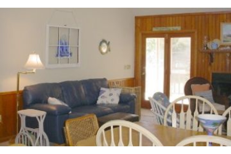 This beautiful four bedroom and two bathroom vacation home is sure to please! The living room is has comfortable seating, cable television, DVD/VCR player, and a wood burning fireplace. The dining area has a lovely wood table that will seat six guests. The kitchen is fully equipped and has a breakfast bar perfect for buffet style meals or entertaining. Have a peaceful nights sleep on the two queen beds, one double bed, and three twin beds offered. Take advantage of the easy beach access offered by this home and play some volleyball with the family.Surrounding Description