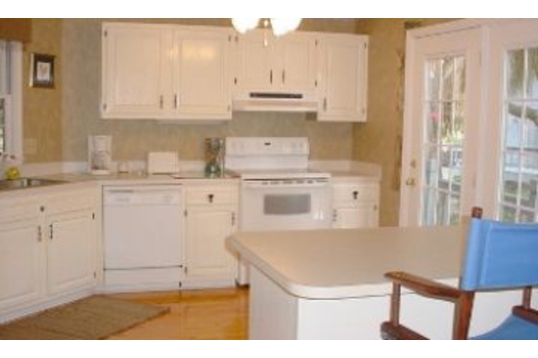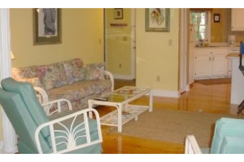 Come relax and unwind in this wonderful two bedroom and two bathroom home. Enjoy the bright and cheery decor and hardwood floors throughout the living, dining, and kitchen areas. The living room has cable television and a VCR/DVD player. The dining area has a lovely glass table that will seat four guests at mealtime. The kitchen is fully equipped and has a breakfast bar with additional seating. The bedding, which will sleep six guests peacefully, includes one king bed, one queen bed, and one queen sleeper sofa. There also is a youth bed that will sleep two children. Step out onto the deck and grill up some dinner while taking in the golf course view.Surrounding Description