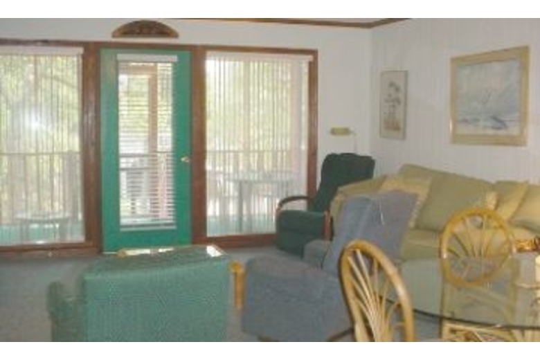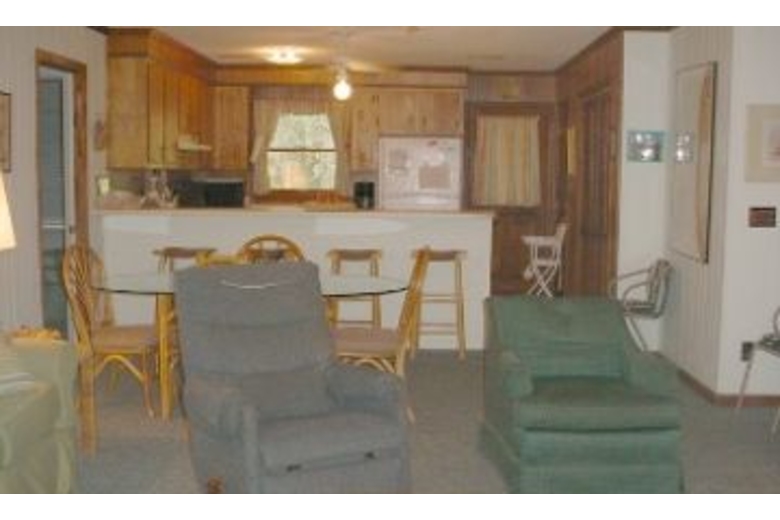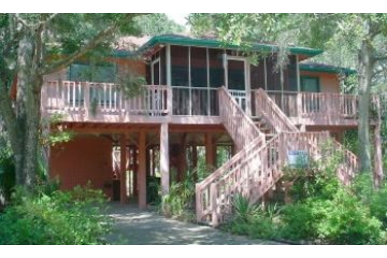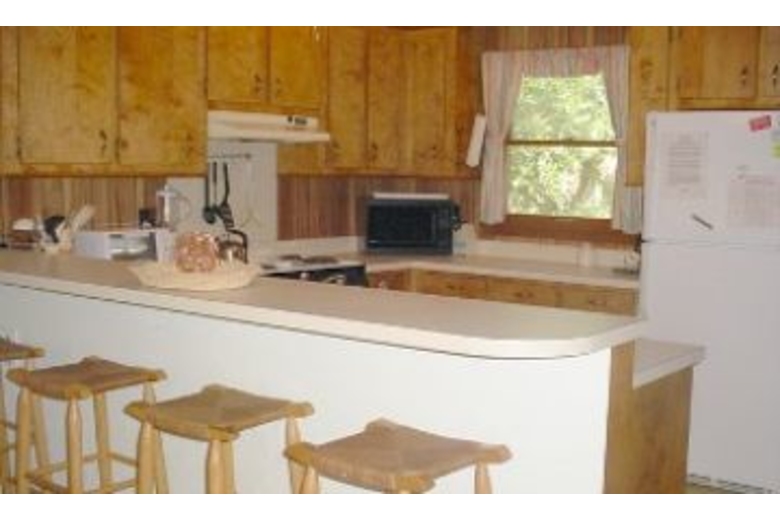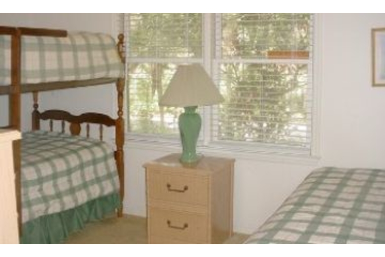 This four bedroom and two bathroom vacation home is lovely and nicely furnished. There is plenty of seating for everyone to relax throughout. Bedding consists of two king beds, one queen, one twin, and one bunk bed providing accommodations for up to nine guests making this getaway perfect for a large family or group of your closest friends. This home offers a washer and dryer, cable TV, DVD player, VCR, and an outdoor charcoal grill perfect for entertaining your guests. Comfort abounds with central air and heat. The kitchen is fully equipped with everything you need to feel right at home during your stay. In the evenings there is no better place to be than your private screened porch where you can relax and listen to the sounds of the crickets chirping their nature songs.Surrounding Description