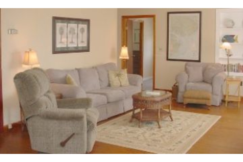 This lovely family beach cottage is just right for those looking for a relaxing getaway on Edisto. Spend your afternoons soaking up the sun and your evenings learning the Island way of life. All you have to do is make the move and reserve Sea Change for your next family vacation. From the moment you walk into the front door of Sea Change and observe the comfortable living room furniture, you will know that you made the right choice in a vacation home. In the living room you can relax and watch a movie. If conversation is what you prefer, the sitting room has plenty of seating so you can spread out. The large kitchen is gorgeous with full size appliances, including a dishwasher so you don't have to hand wash a single dish. The master bedroom boasts of a queen size bed and blue and tan colors to help you relax. In the second bedroom you will find a double bed with a palm tree theme. The third bedroom has two twin beds, so there is plenty of room for you and your family to unpack and enjoy your vacation.Surrounding Description