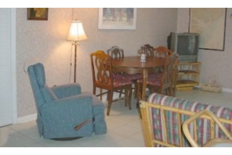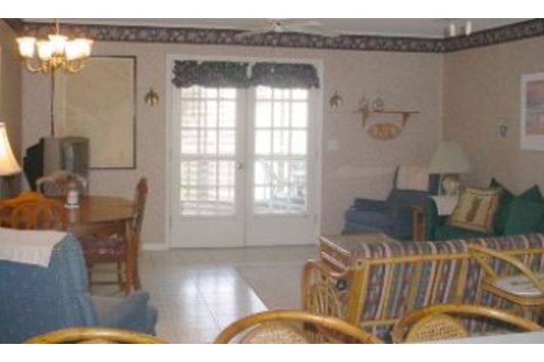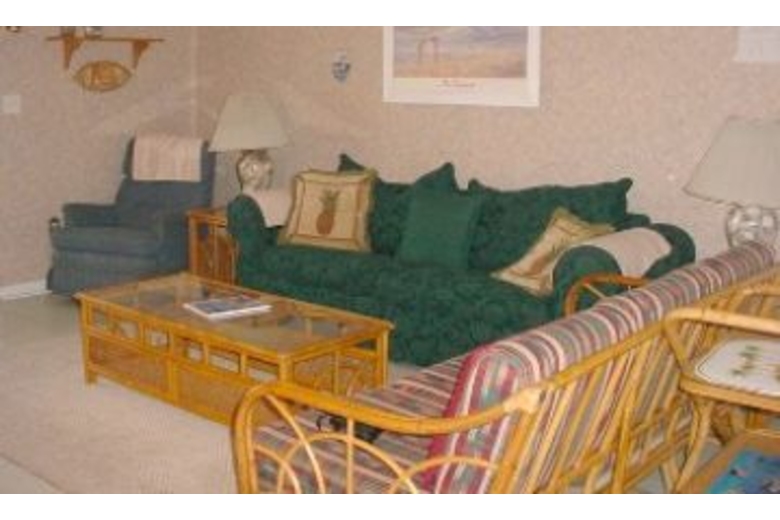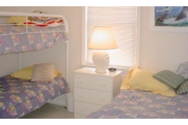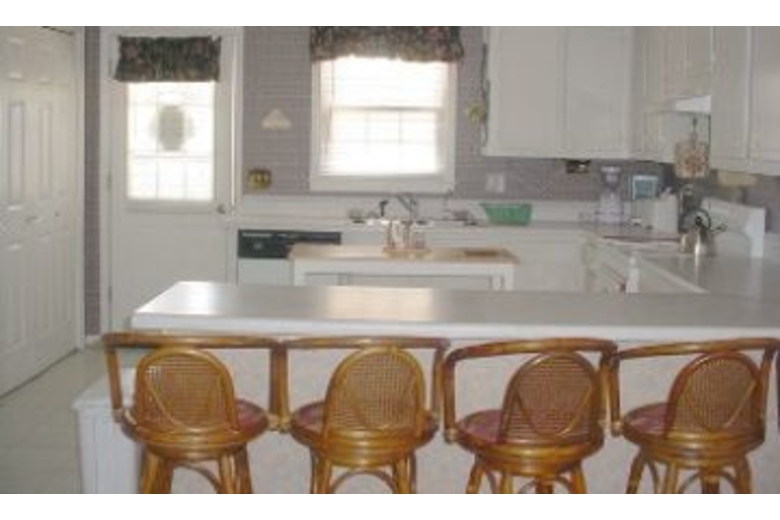 This four bedroom, two bath home can sleep up to twelve people comfortably. Bedding includes three queen beds, one double bed, one twin bunk bed, and a queen sleeper sofa. The living area offers comfortable furnishings, cable TV, and access to the porch. The kitchen comes fully equipped with everything you need for cooking your favorite meals and offers seating for four at the breakfast bar. There is also a dining table for four.Surrounding Description