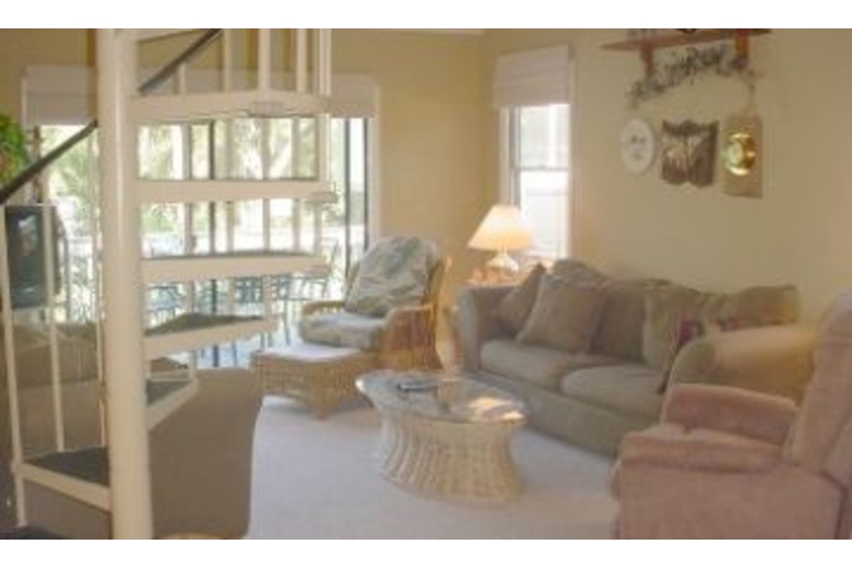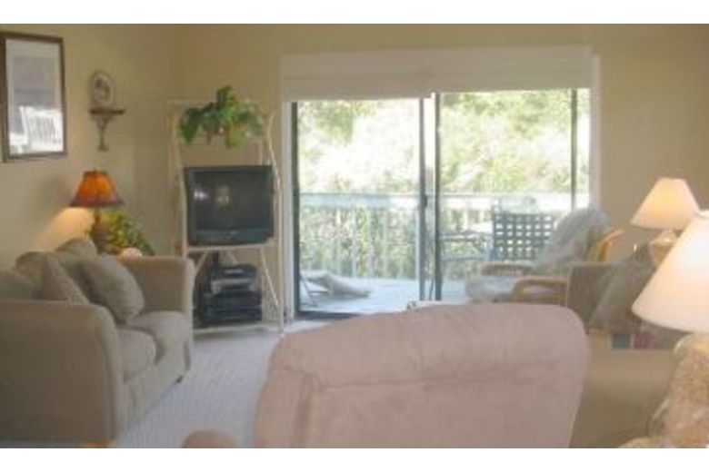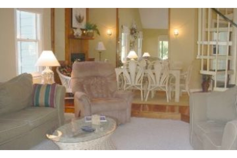 Six people can be accommodated in this home with the two bedrooms plus loft and two bathrooms. The master bedroom has a king bed and the second bedroom has a queen sized bed. The loft contains two twin sized beds, perfect for the kids. This home has hard wood floors throughout it. The kitchen is fully equipped containing all necessary amenities including a dishwasher. The living room is comfortably furnished and gives access to the screened porch. This home features lagoon and golf course views. Total amenities include cable TV, a DVD/VCR player, washer and dryer, and a charcoal grill.Surrounding Description