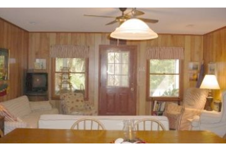 This home offers southern charm with four bedrooms and two bathrooms. The bedding includes a queen size bed in the master and second bedrooms with a double bed in the third. The fourth bedroom has two twin beds and there is a double sofa sleeper available. The open floor plan consists of a fully equipped kitchen with an adjoining dining area and a nicely furnished living room. A washer/dryer and cable TV are also included. Outside features include a deck with a grill for outdoor entertaining and an outdoor shower. This home also has a great screened porch overlooking the wooded views.Surrounding Description