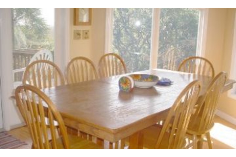 This lovely home has four bedrooms and three bathrooms. There is a queen size bed in two of the bedrooms, with a double in the third and two twin beds in the fourth bedroom. A futon and two cots are available for additional bedding. Beautifully furnished, there is a nice living room, dining area and fully equipped kitchen with wood floors throughout. Highlights include a gas fireplace, washer/dryer, and satelitte TV. Outdoor amenities include a deck, screened porch, grill, outdoor shower, and private dock.Surrounding Description