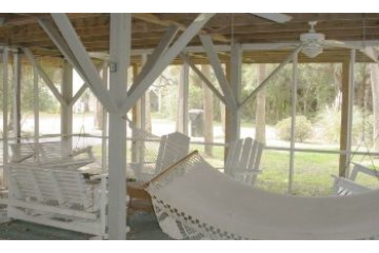 This lovely home has four bedrooms and two and a half bathrooms. Spacious enough for a family, the bedding includes two queen size beds and five twin size beds with an additional cot. This home has a fully equipped kitchen and dining area. The highlights include very nicely furnished gathering areas such as the living room, screened porch and patio. These sitting areas offer rocking chairs, hammocks, and porch swings; the perfect place to unwind. For outdoor entertainment, there is an outside shower, deck, grill, picnic table, and fishing cleaning sink.Surrounding Description