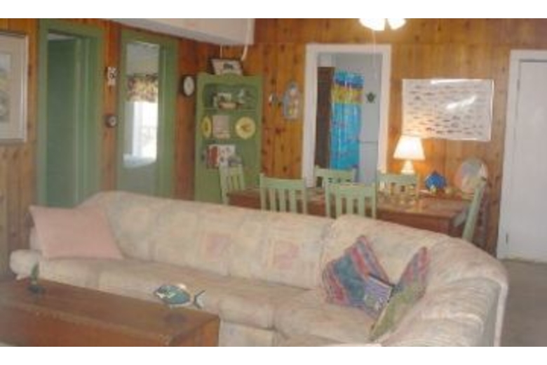 This home offers three bedrooms and one and a half bathrooms. The bedding consists of a double bed in each of the bedrooms with twin bed in the sunroom. A sofa sleeper is also available. This home features a fully equipped kitchen, dining area, and living room. Guests will enjoy the nice furnished screened porch, deck and sunroom. Other great features include a washer/dryer and an outside shower.Surrounding Description