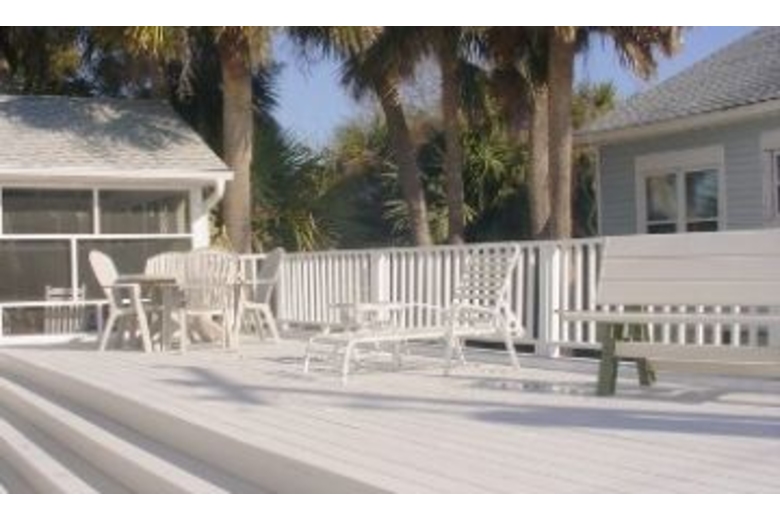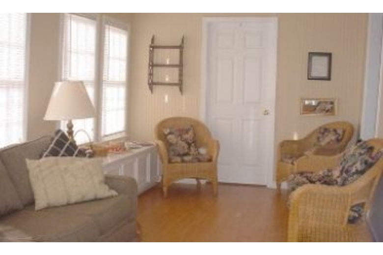 Experience a great vacation while staying in this lovely four bedroom, two bathroom home near the beach with an outdoor shower. Elegantly designed with upscale furnishings and cute decor, this home provides an air conditioned retreat with all the necessities of home and more. A full kitchen with a clean crisp feel and six bar stools, a refrigerator and a microwave. Enjoy the warmth of the sun while relaxing in the sun room or screened porch while the steaks cook on the grill. This upscale home provides a VCR, DVD player, 2 TVs and extended cable.Surrounding Description