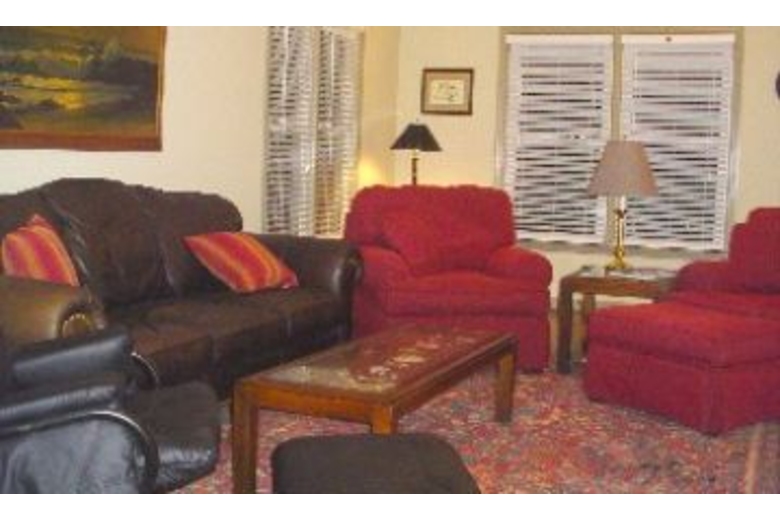 This two bedroom, two bath home has a dining area with a table and six chairs. There is a fully equipped kitchen with a coffee maker, microwave and dishwasher. The living area has a ceiling fan, cable TV, a VCR and DVD player. The first bedroom has a queen bed and the second bedroom has a double bed. For one extra guest, there is a single sofa sleeper available. Also available with this home is central air and heating.Surrounding Description