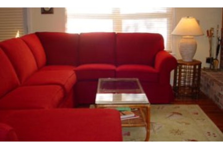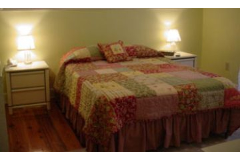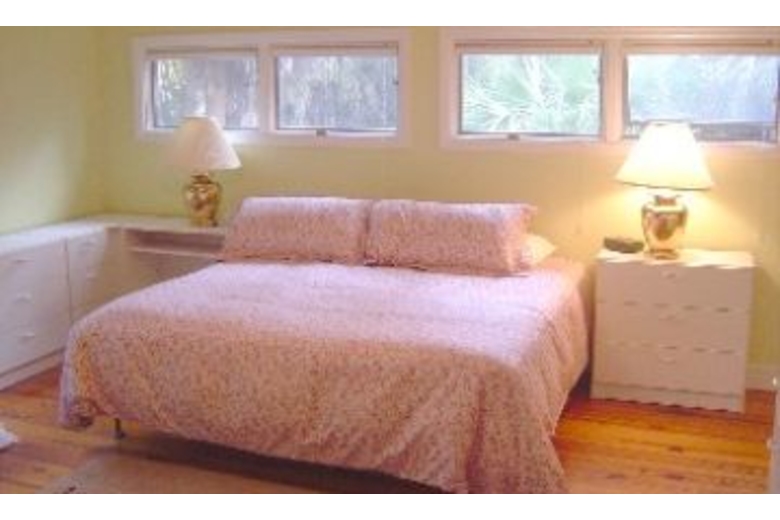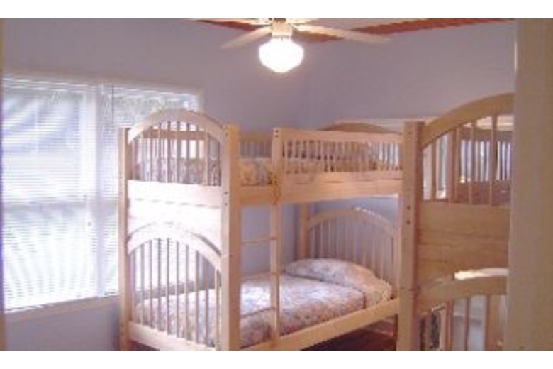 This three bedroom, two bath home features a wood-burning fireplace, central air and heating. The living area has a ceiling fan, extended cable and a VCR. The fully equipped kitchen has a coffee maker, dishwasher, microwave and ceiling fan. The dining area has a table and four chairs. There is a breakfast bar connected to the kitchen with extra seating. The first bedroom has a king bed and ceiling fan. The second bedroom has a double bed. The third bedroom has two bunk beds (four twin beds).Surrounding Description