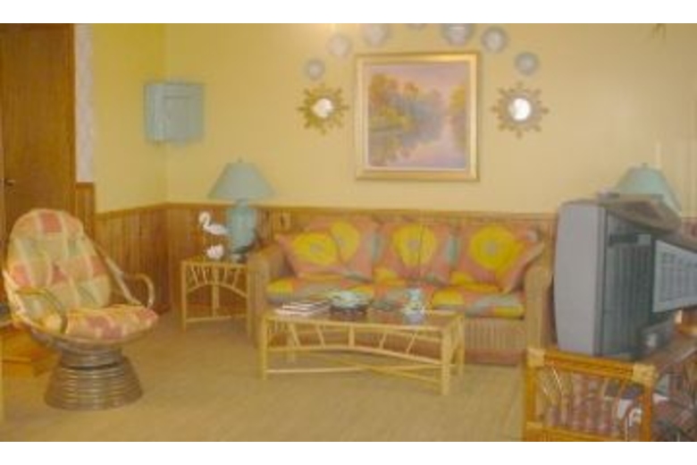 Enjoy a wonderful duplex near the beach for your next family getaway. The living area is bright and nicely furnished. The room features ample seating along with a fireplace and access to the balcony and a beautiful view. The spacious kitchen is fully equipped and the dining area features a lovely table everyone will enjoy. This unit features three bedrooms to comfortably sleep a group of eight. The first bedroom is decorated in sunny colors and features a cozy queen bed. The second bedroom features a queen bed dressed in the colors of the sea. The third bedroom is great for the kids and features two twin beds. For additional room, there is a queen sofa sleeper in the living area. Enjoy sitting out on the patio in one of the rocking chairs and take in the beautiful views of the shore.Surrounding Description