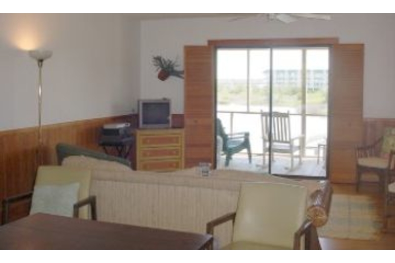 Stay in this comfortable and bright home. The living room is lively with great furnishings and opens to the dining area. The kitchen is fully equipped and even has a large island with extra counter space. There are four bedrooms and two baths. The bedding includes a queen, a double, seven twins, and one sofa sleeper. Enjoy the view or go check out the dock.Surrounding Description