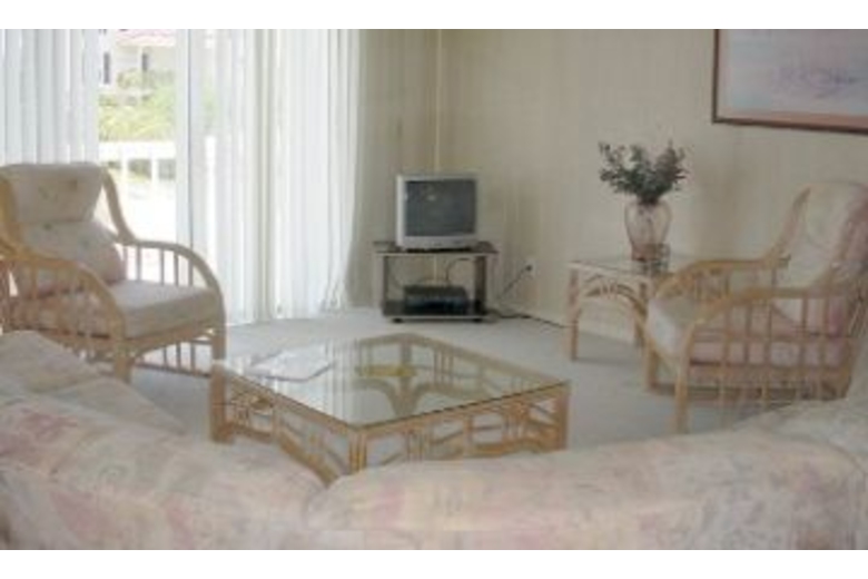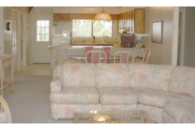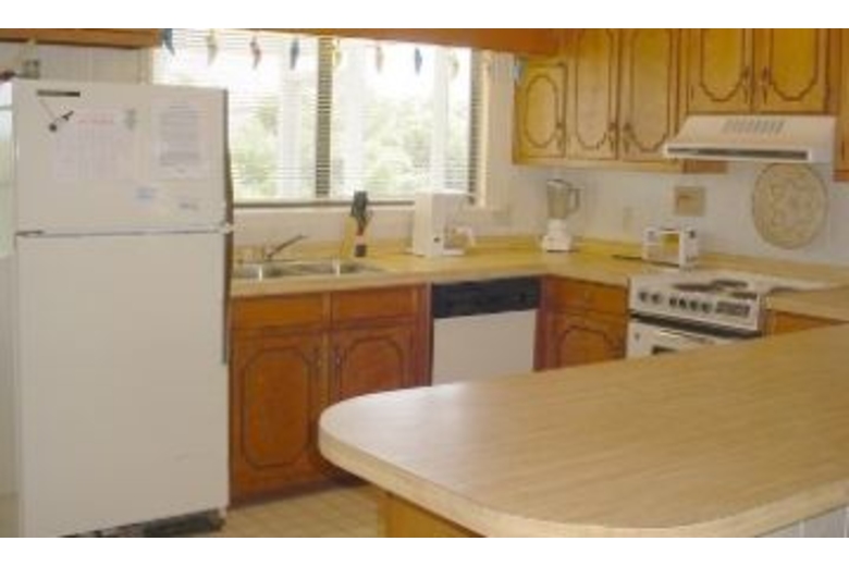 This cute three bedroom, two bath home is decorated with calming pastel colors. The living room is furnished with a comfortable sectional couch, television, and it has access to the deck. The kitchen is nicely appointed so you can cook a fantastic meal. Sit and enjoy the sundeck or screened porch.Surrounding Description