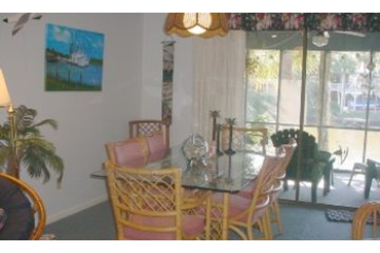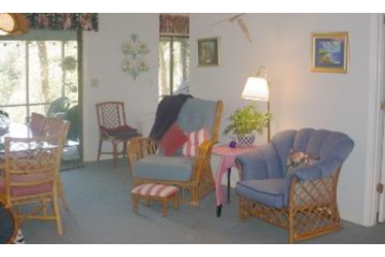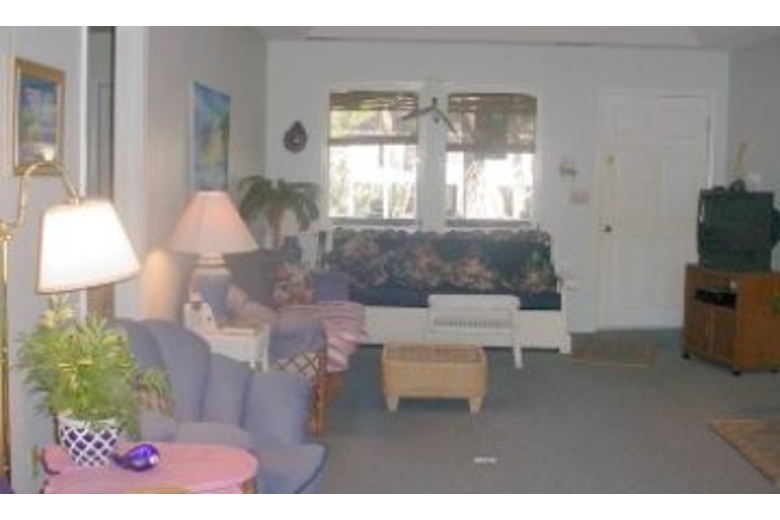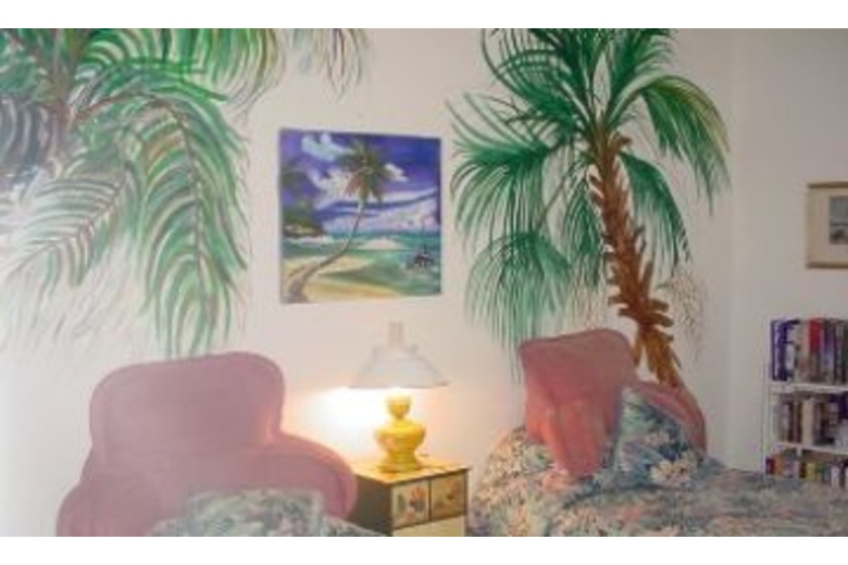 The living area has plenty of places to sit and visit with friends and family after a day at the beach. The kitchen is nicely equipped. The master bedroom has a unique king bed with artful nightstands. The second bedroom offers two twin beds and fun palm trees painted on the wall. The third bedroom offers a double bed with two twin beds. This home is equipped with a washer and dryer.Surrounding Description