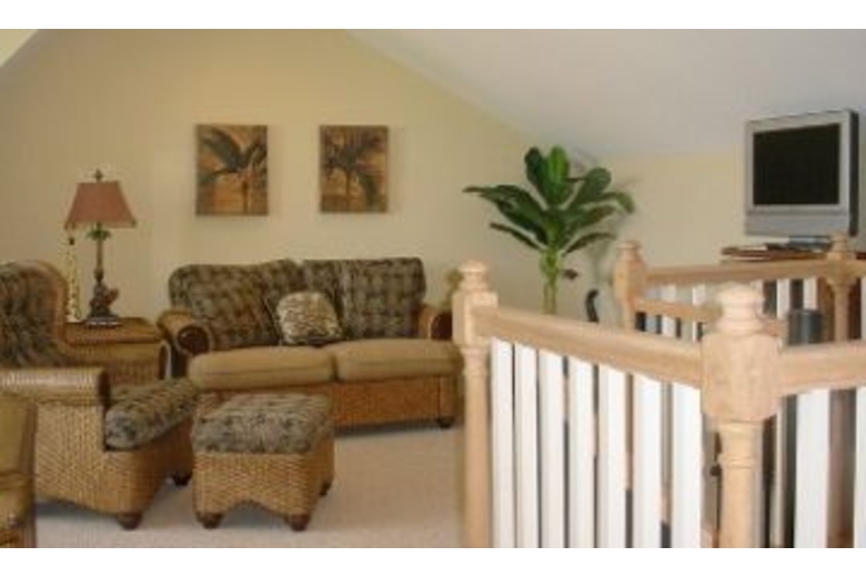 The loft in this retreat offers a fun relaxing place to be together. This room features a gorgeous railing, a TV and nice sofas. The living room is formal and has a fireplace. One of the walls in the living area is almost all beautiful windows. The kitchen is spacious and has stainless steel appliances and plenty of counter space to prepare a gourmet meal. Three bedrooms offer queen beds and the fourth offers two twin beds.Surrounding Description