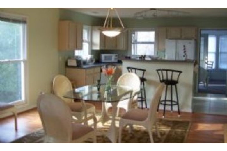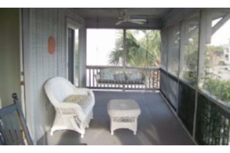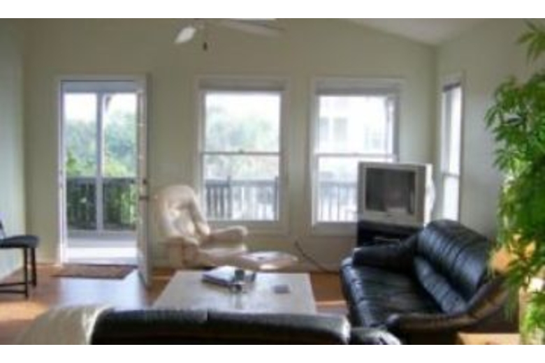 This home features two bedrooms and two and a half bathrooms. The master bedroom is furnished with a queen sized bed and the second bedroom has two twin beds that can convert into a king sized bed if desired. The living room has vaulted ceilings and beautiful natural light. The furnishings are comfortable and there is access to the screened in porch. The living room has satellite TV and a DVD player. The kitchen is fully equipped with all necessary appliances and cookware. For dining there is a dining table and countertop seating. More amenities include wireless internet access, a washer and dryer, and a gas grill.Surrounding Description