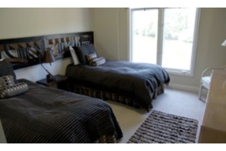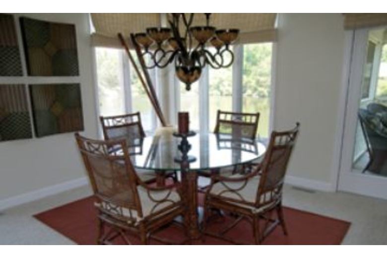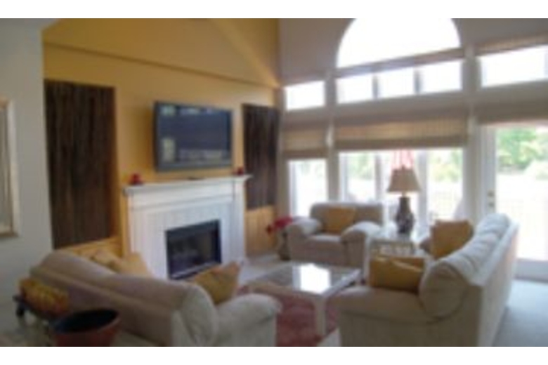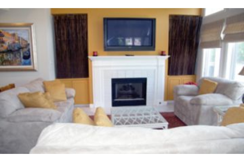 The family room in this three bedroom townhome is open and very modern. Enjoy the nice sofa, the fireplace, and the huge windows that overlook the lagoon. All three bedrooms are very spacious and have very nice furniture. Enjoy your morning coffee outside on the comfortable patio furniture.Surrounding Description