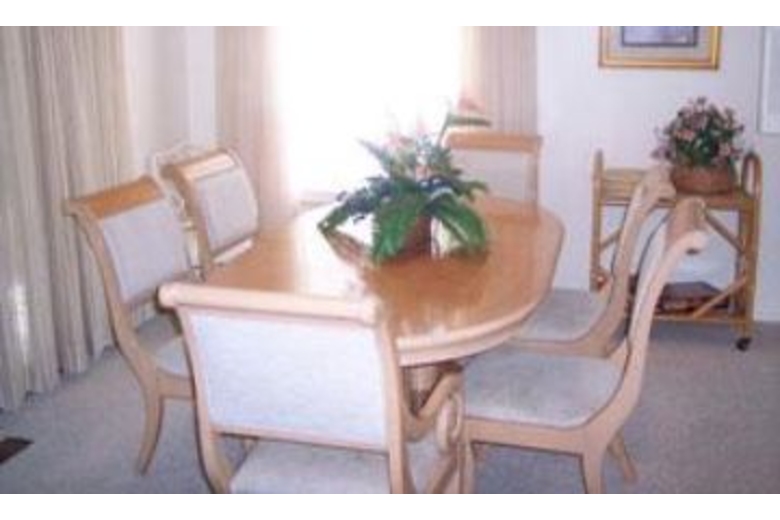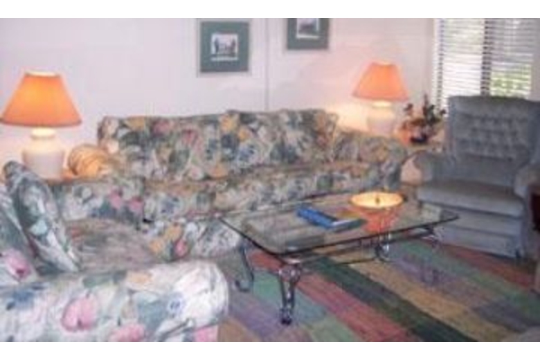 Relax in front of the television after a long day of golf or day at the beach, or stick in a movie on one of the 2 VCR's and 2 DVD players. It features views of the golf course and quick access and easy access to the beach. This 3 bedroom unit also features 2.5 bathrooms and provides sleeping accommodations for up to eight people. The master bedroom has a king size bed and the second bedroom has a queen size bed. The third bedroom has two twins and the living area becomes an extra bedroom in the evening with a sleeper sofa.Surrounding Description