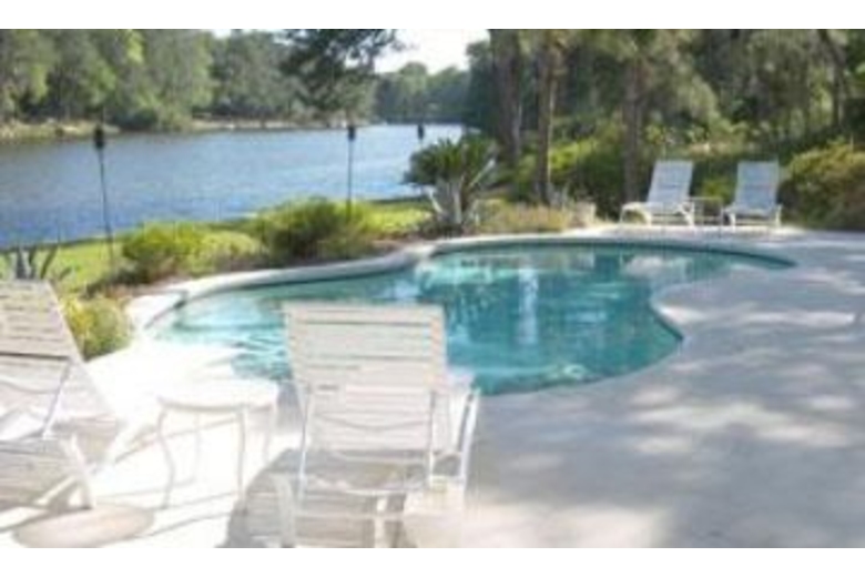This three bedroom and three bathroom newly renovated private home offers the best in sophistication and style. With the ability to accommodate up to eight, it is open and spacious. After a long day of adventures on Hilton Head Island, come home to this private retreat and enjoy your favorite beverage while sitting on the back patio and watching the stars. Entertainment is enless with four TVs, and the VCR's as well as wireless internet. The kitchen is fully equipped to handle your entire family and will make you feel right at home. Enjoy soaking all of your cares away in the private pool that also comes with this vacation home.Surrounding Description