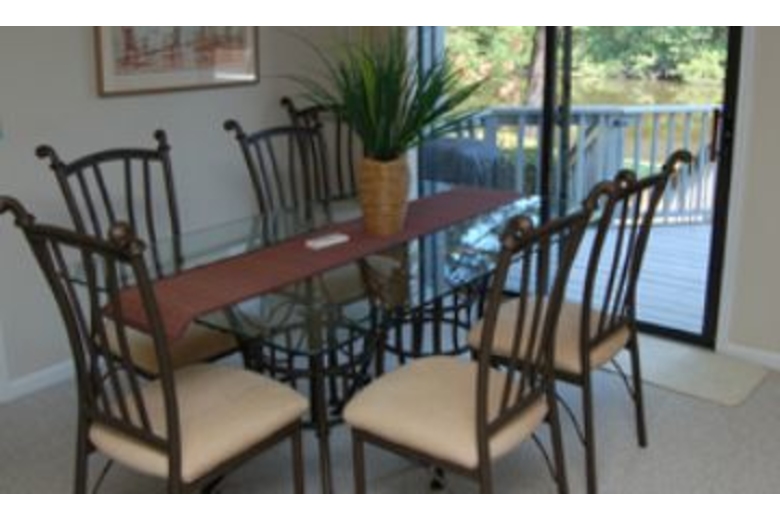This beautiful two bedroom plus private den townhome is the perfect vacation townhome. It has a living room with a sofa, love seat and chair and slider to the deck. Guests can enjoy lovely lagoon views. The dining room seats 6 and also has a slider to the deck. The full equipped kitchen offers lagoon views and has a table that for 4. The den has a sleeper sofa, private bath with shower only. The deck area has a table and chairs that seat 6 with a view of the lagoon, small charcoal grill and grassy lawn off deck. The first bedroom has a queen bed, small TV, lagoon views and private bath with standing shower. The second bedroom has a king bed, TV, VCR lagoon views and private bath with soaking tub and separate shower. This cozy Sea Pines villa is a great location for a visit to Hilton Head!Surrounding Description