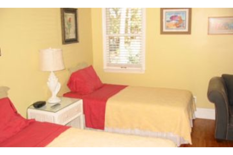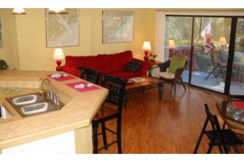 A lot of thought and care went into the interior design of this villa. This exceptional townhome exceeds traditional standards. You will find stylish, beautifully coordinated, designer furnishings throughout. This villa has been newly decorated and has all new furniture. The gourmet kitchen is fully tiled. The appliances and furnishings are all brand new. This luxuriously furnished, three-bedroom, three-bath, private residence is tastefully decorated in a tropical decor. On the first floor there is a living area, and a kitchen with all-white counter tops, and a bar-height kitchen counter top and stools. There's also a separate eat-in kitchen, a laundry area, and a large TV entertainment center. Outside, in the middle of a subtropical setting, this end unit offers a private deck with rocking chairs and a barbecue. Each bedroom suite has its own full bathroom. The upstairs master has a king-size bed and the downstairs master has a king size bed. A TV/VCR is included in the master bedrooms. The second upstairs bedroom has twin beds and mattresses which can be converted to a king-size bed. All bedrooms have cable TV. There are upscale linens and towels in both bedrooms. The two-story townhouse design ensures that there is no one sleeping above you - to guarantee a quiet evening's rest.Surrounding Description