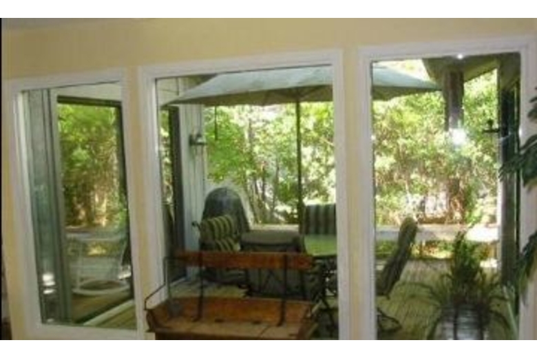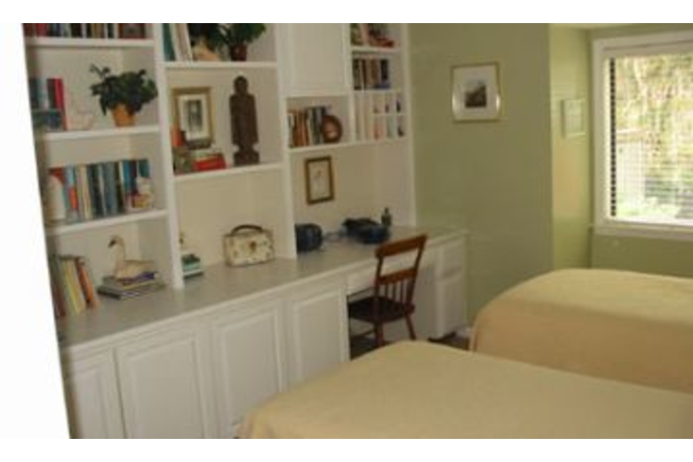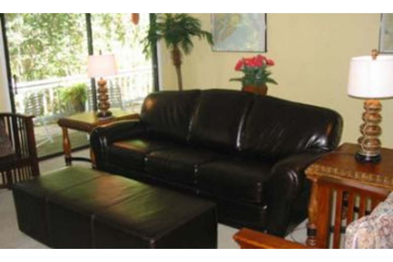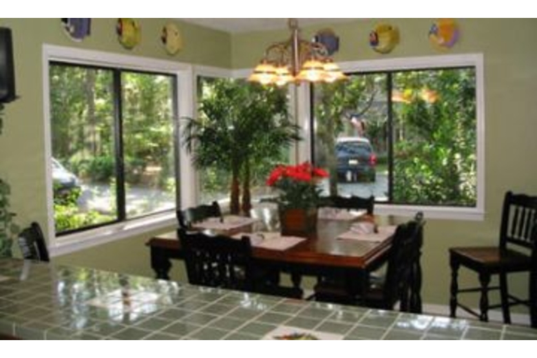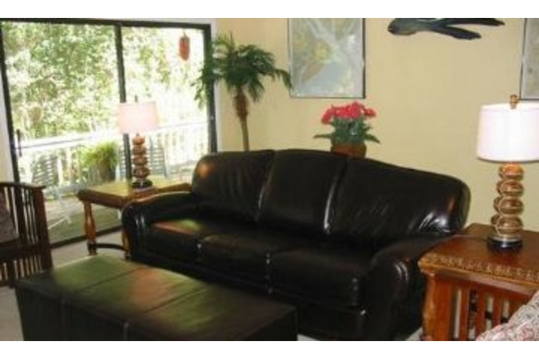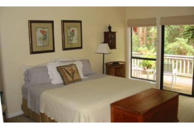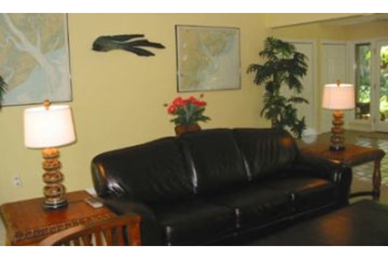 All one-floor living is offered by this elegant home. The oversized living room has vaulted ceilings, a fireplace, video library and a wall of glass to relax and view the local wildlife and the preserved maritime forest. If desired, the tiled kitchen with all new appliances and TV provides the ability to prepare and serve a full course meal.You’ll find stylish, beautifully coordinated designer furnishings throughout. Included are pillow top mattresses and upscale linen in all bedrooms to insure a good night’s sleep. The master bedroom has a king-size bed, private bath, as well as a deck for quiet relaxation. The second bedroom has queen-size bed. The third bedroom has twin beds (they can be converted to a king size bed upon request); also a built in office and a small library. All of the bedrooms have a TV and a VCR.Surrounding Description