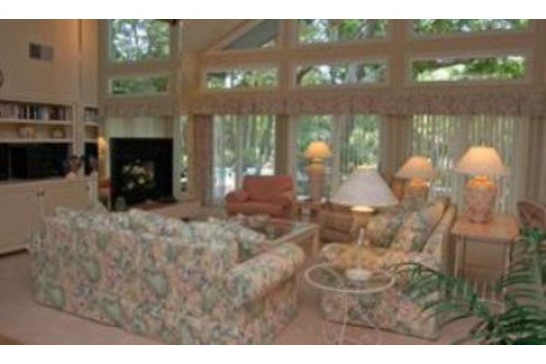 This designer decorated, 3 bedroom, 3 bath vacation home is located in a wooded setting overlooking the Robert Trent Jones golf course on Hilton Head Island. Spacious and bright with vaulted ceilings, the living area has a TV/VCR/DVD, stereo system, game table, wet bar, and two large sofas, one of which is a queen sleeper sofa. This home is a 7 minute walk to a fabulous beach on Hilton Head Island.