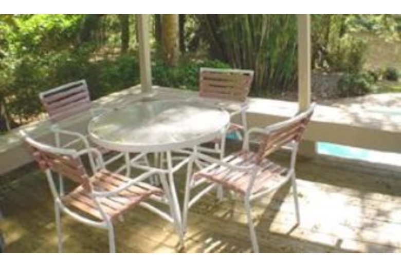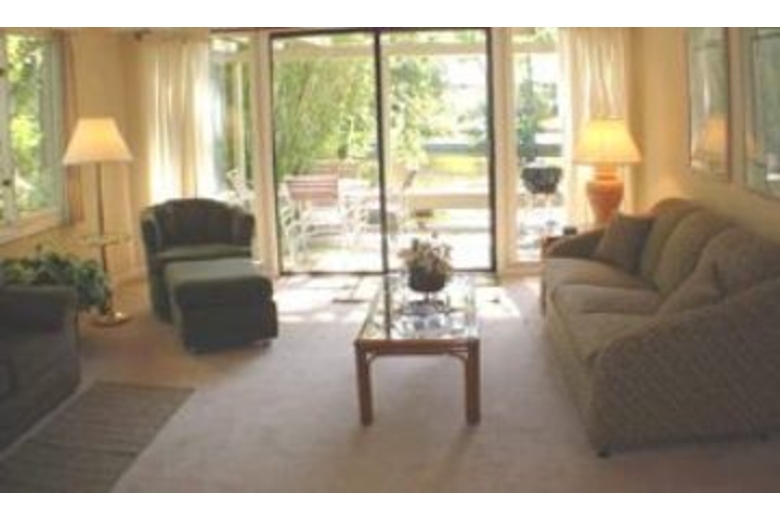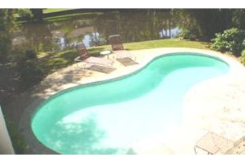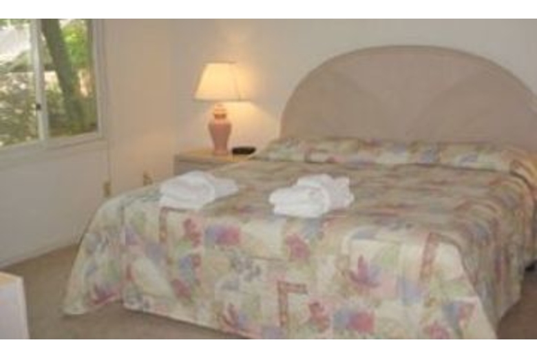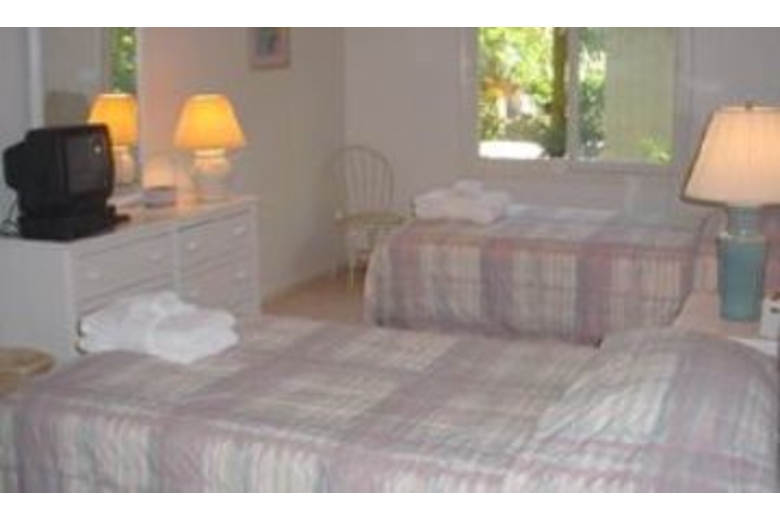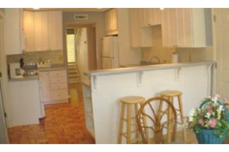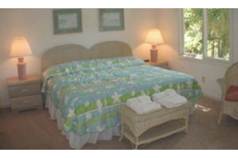 The dining room seats up to six, and opens to a kitchen with an extra breakfast area that overlooks the beautiful lagoon. The master bedroom upstairs is furnished with a king-swing bed, TV, VCR, and a large private bath with a jetted tub and separate shower. The second and third bedrooms are also located upstairs and feature a king-swing and a queen bed, respectively. Both bedrooms have TVs and share a bath. The fourth bedroom is located downstairs and has two twin beds, a TV/VCR, and uses the full hall bath.Surrounding Description