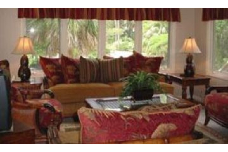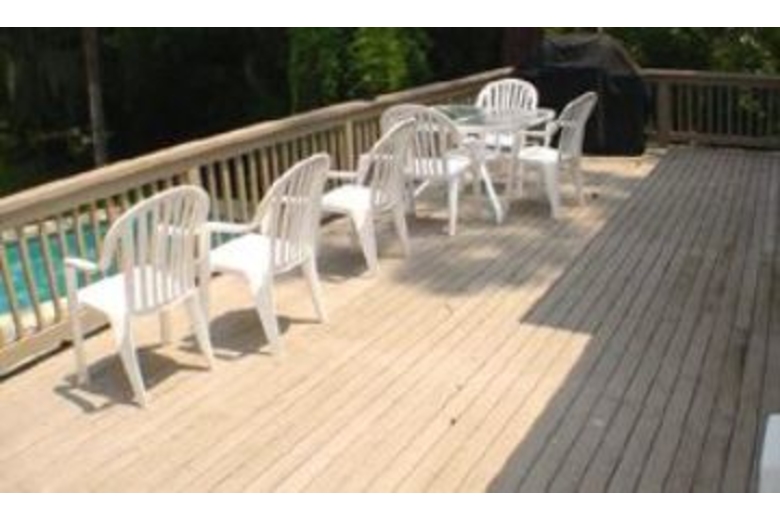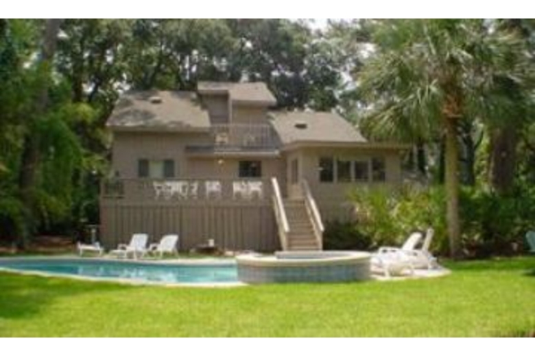 The first floor of this home has lots of space for your whole group. The living room features cathedral ceilings, TV/VCR/DVD and lots of comfortable seating. The kitchen has everything for all your cooking needs. The dining room seats 8 and opens to the Carolina and living rooms. The bright and spacious Carolina room overlooks the large backyard and pool area. The back deck views the pool, backyard and lagoon area and is a great place for grilling out, relaxing and enjoying the natural beauty of Hilton Head Island. The large pool and jacuzzi can be heated separately. On the first floor you will find the master bedroom with king bed, TV, private bathroom and views of the backyard and pool area. A second king bedroom with TV and private bathroom is also on the first floor. On the second floor are two bedrooms with two twin beds in each room. The twin bedrooms share a full bathroom.Surrounding Description