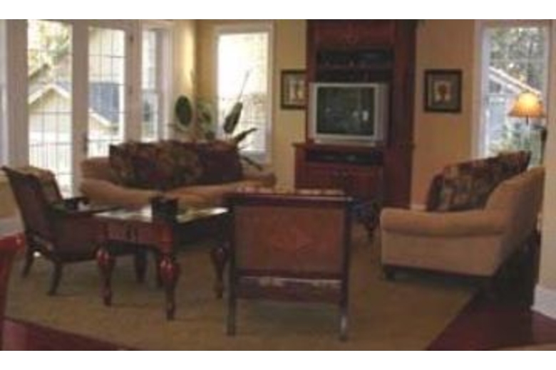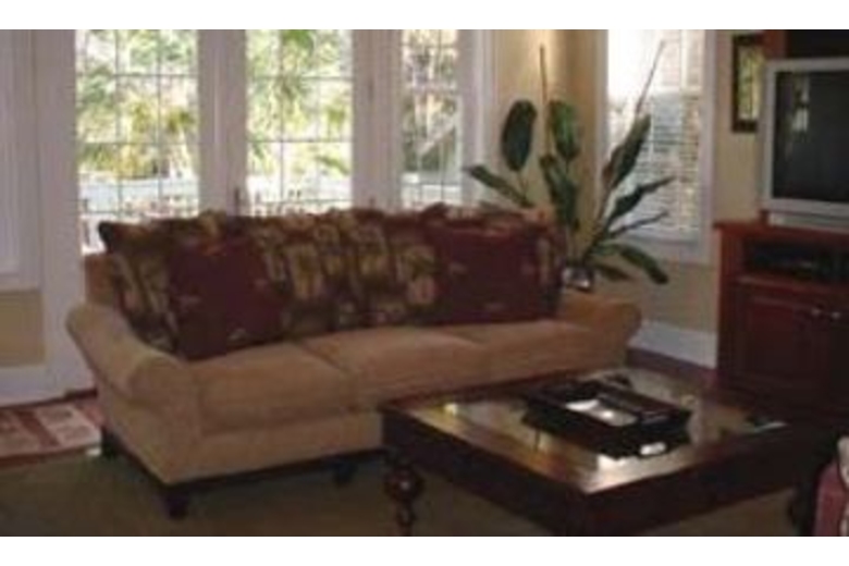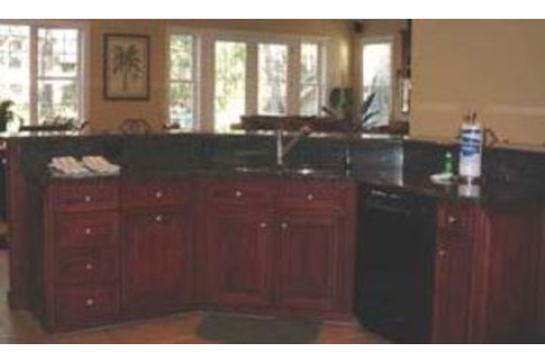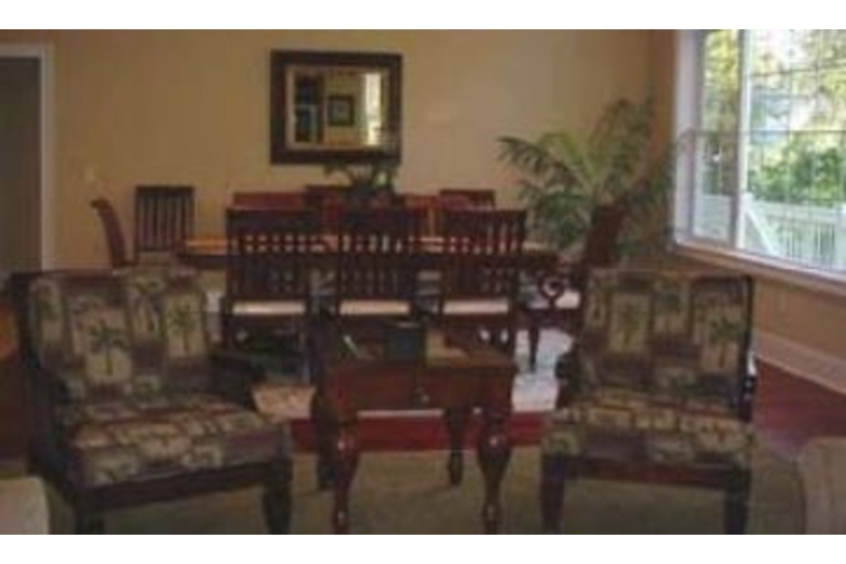 The bright open living room features hardwood floors two sofas, two chairs and a TV/VCR/DVD and audio system. Doors from the living room step out to the back deck furnished with two tables and six chairs overlooking the pool area. The kitchen area opens up to the living/dining area and is very spacious. An eat-in bar area with six bar stools surrounds the kitchen. The dining room has a table and ten chairs. Three bedrooms are on the first floor. The master bedroom has a king bed, TV/VCR, private bathroom with double sinks, jetted tub and seperate shower. Doors from the master bedroom lead to a private back deck with a table and chairs overlooking the near ocean pool area. The second bedroom has two twins, TV/VCR and shares a bathroom with the third bedroom. The third bedroom has a queen bed and TV/VCR. On the second floor you will find the large fourth bedroom - this room has two queen beds, TV/VCR and a private bathroom. The backyard has a sunny kidney shape pool with spa. On the patio around the pool is a weber gas grill and several lounge chairs.Surrounding Description