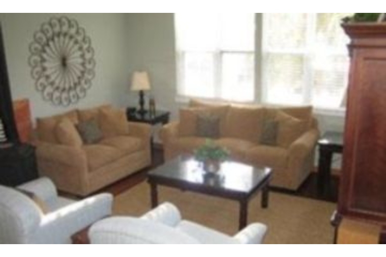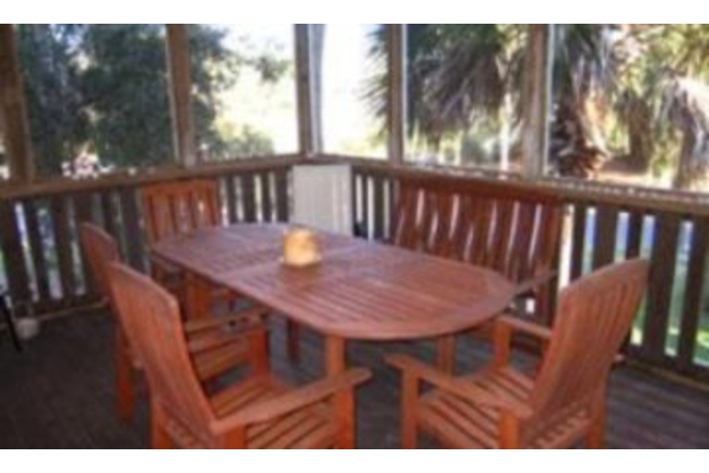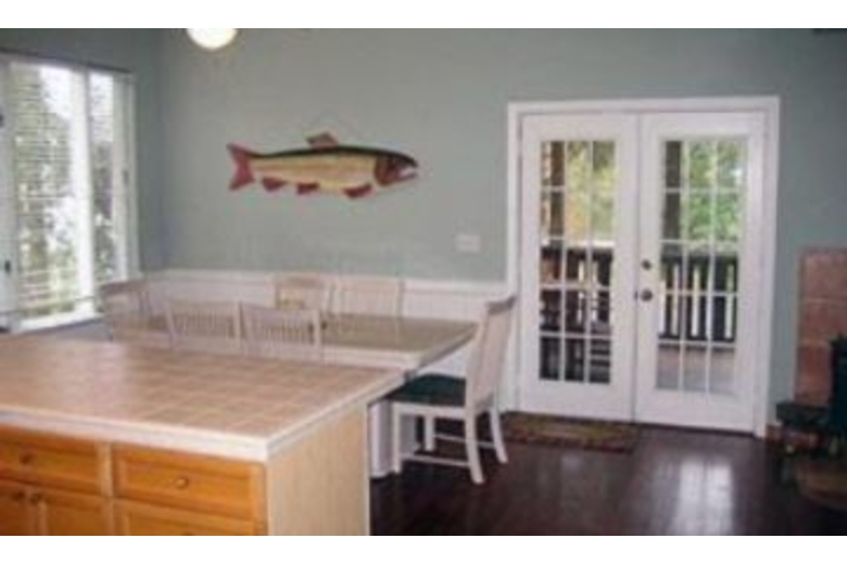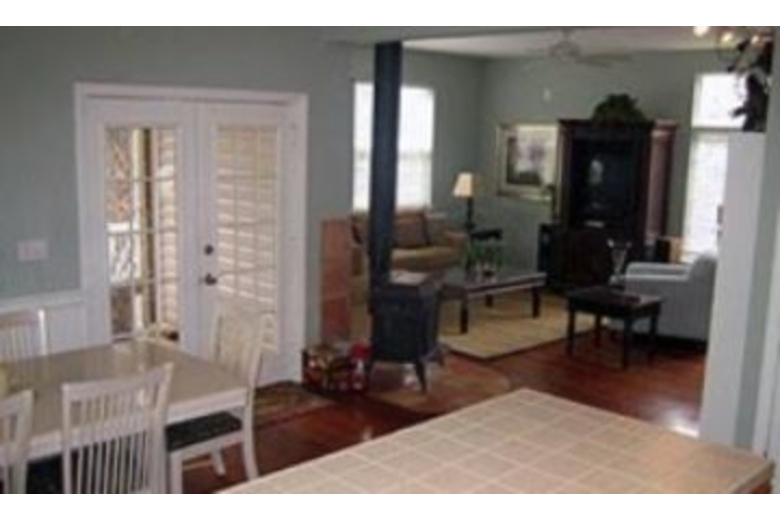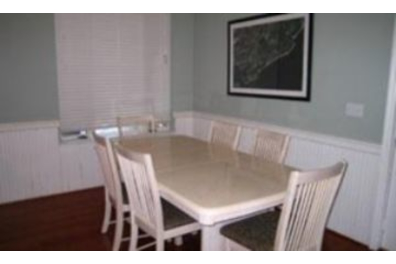 The kitchen is spacious, and opens up into the dining area, and furnished porch so you can enjoy eating inside or out. Some of the homes features are hard wood flooring, and a screened in porch. The first floor bedrooms include a queen size bed, with a private bath, and a second bedroom that has 2 twin beds and a half bath. The entire upstairs is the master bedroom which has a king size bed, and a medium size deck out the french doors.Surrounding Description