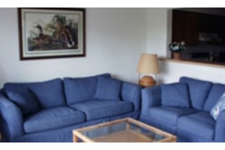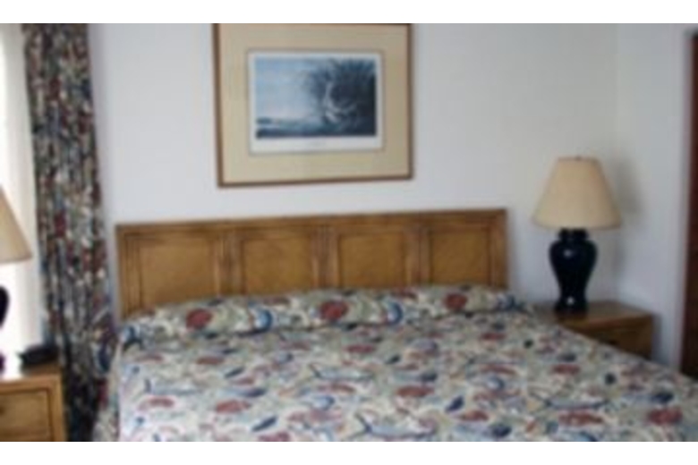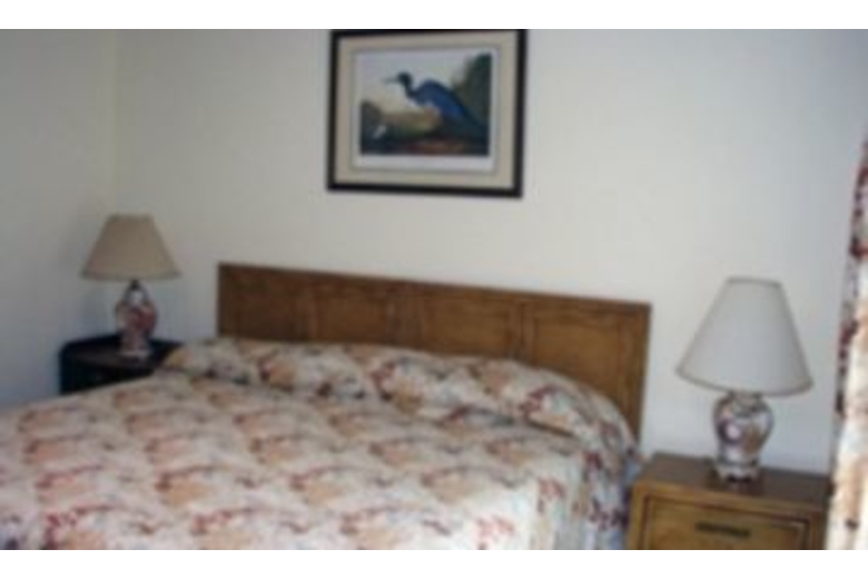 This villa has two bedrooms, two bathrooms and a screened porch for your group of four. Two king beds will guarantee a good nights sleep. The living room has a homey feel with soft couches and an entertainment set up. The kitchen provides all the necessary appliances to make a yummy meal for family or friends. Step out onto the deck and enjoy the beautiful lagoon and fairway views and soak in the warm sun rays.Surrounding Description