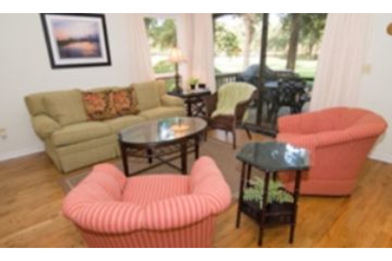 A gorgeous villa that has 2 bedrooms and 2 baths that make it perfect for a couples retreat. The full kitchen features wood cabinets, granite countertops and top of the line appliances. Lovely furnishings and decor provide a cozy and relaxing place to stay with wood cabinets, granite countertops, hardwood floors. It also has a four season room located off the den. There is also high speed internet access at this villa. There is a 32 inch flat panel television in the living space along with a sleeper sofa. The master suite has a king size bed and it's own view of the golf course and private bath with a 27 inch flat panel TV, while the master bath has a large walk-in shower. The second bedroom has a queen size bed and a 27 inch flat panel TV for your enjoyment.Surrounding Description