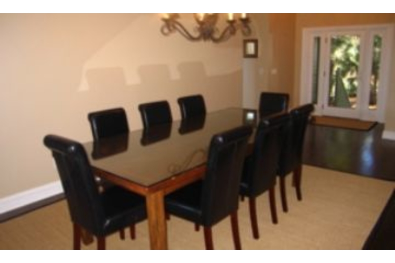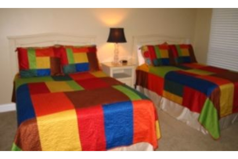 The kitchen in this home is spectacular. It features black appliances and granite countertops. There is a large breakfast bar. The dining table is great, and it seats eight. The Master Bedroom has a king bed and the bath has whirlpool tub and separate shower. The second bedroom has two double beds and bath with a shower. The third bedroom has two double beds and a bath with a tub and shower.Surrounding Description
