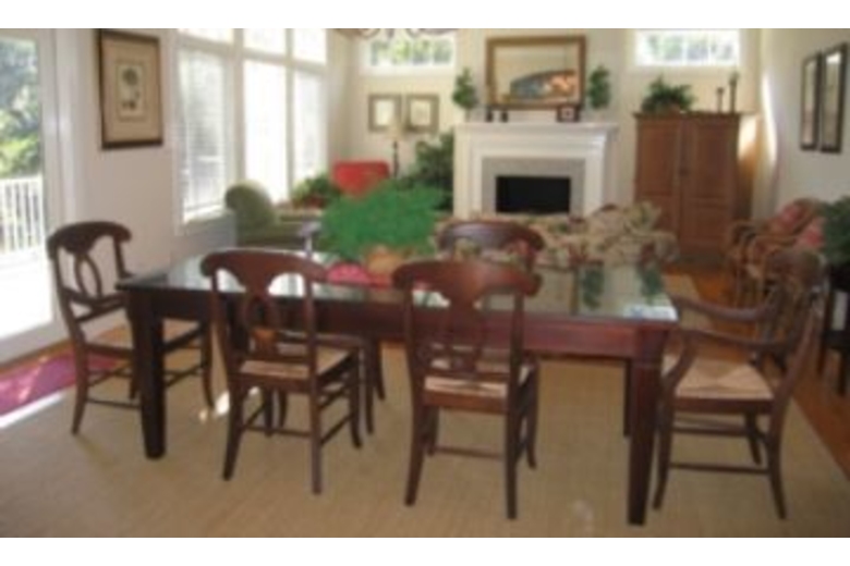 This is a three bedroom, three bath house that offers wireless internet access. Lounge in the living area by the fireplace while enjoying a movie or your favorite TV show. The kitchen comes fully equipped and the dining area can seat up to eight guests. Bedding includes a king bed in the master suite, two twins in one bedroom, and a queen bed in the third bedroom. There is also a sleeper sofa in the den for two additional guests.Surrounding Description