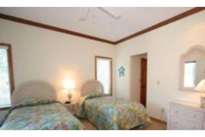 The first floor bedroom has 2 twin beds and a full bath with shower only. The master bedroom is on the second floor, and has a queen size bed, and a private deck, with a whirlpool tub, and separate steam shower. Two additional bedrooms each have queen beds, and share a full bath. The kitchen is fully equipped, and there is a grill for those days you wish to BBQ.Surrounding Description