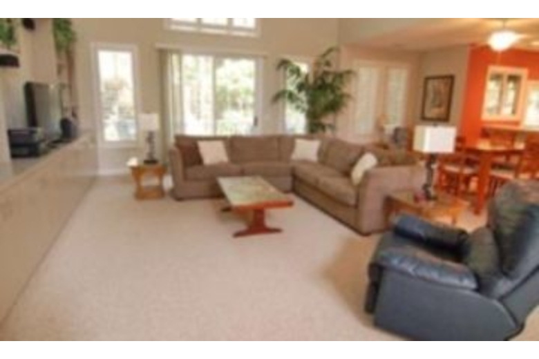 This beautiful home has vaulted ceilings a beautiful wooded view and features 4 bedrooms and 3 bathrooms and provides sleeping accommodations for up to 10 people. The master bedroom has a large king size bed and the second bedroom has a double bed. The third bedroom has 2 twin beds and the 4th has 2 twin beds. The living area becomes a 5th bedroom in the evening with a sleeper sofa.Surrounding Description