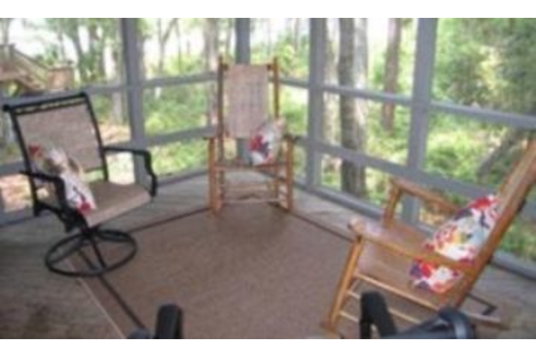 Inside this cottage are three bedrooms, two baths, tasteful decor and comfortable furnishings. The dining area comes with a table and six chairs. The fully equipped kitchen has granite countertops, a microwave, dishwasher and breakfast bar with extra seating. In the living area there is a TV, ceiling fan, gas fireplace and access to the deck. The master bedroom has a king bed, porch access and a ceiling fan. The second bedroom has a ceiling fan and queen bed. In the third bedroom you will find two twin beds.Surrounding Description