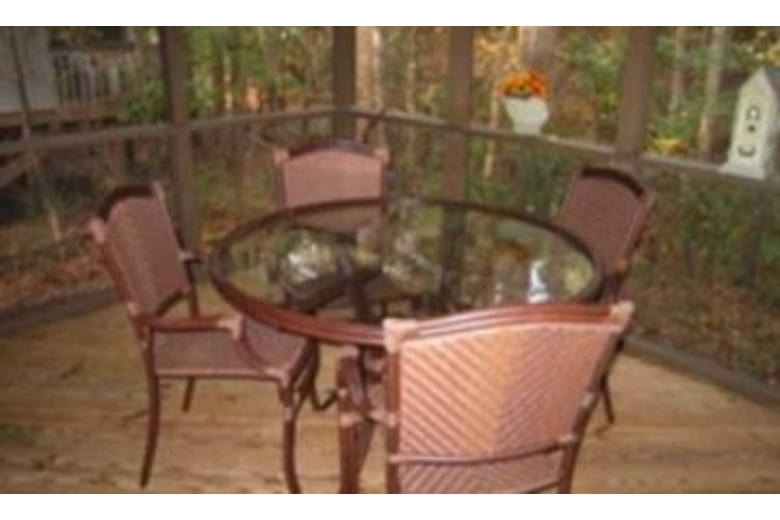 This three bedroom, two bath cottage has plenty of room for up to eight people. There is a fully equipped kitchen with an ice maker, microwave, dishwasher and refrigerator. In the dining area you will find a table with seating for six. There are two extra chairs in the kitchen. The living area comes with a gas fireplace, TV, access to the screened porch and a double sofa sleeper for two extra guests. The master bedroom has a queen bed, TV plus access to both the deck and screened-in-porch. The second bedroom also has a queen bed. The third bedroom comes with two twin beds. Available for your use is a washer, dryer and telephone.Surrounding Description
