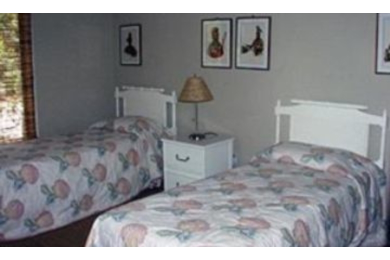 In this cottage there are three bedrooms, two baths, a washer, dryer and telephone. The living area offers access to the porch plus a gas fireplace and wet bar. The dining area comes with a table, three chairs and a bench that goes along two walls. The fully equipped kitchen has a blender, coffee maker, tile floors, a ceiling fan, dishwasher and microwave. In the master bedroom there is a king bed, TV and deck access. The second bedroom has a queen bed and in the third bedroom there are two twin beds.Surrounding Description