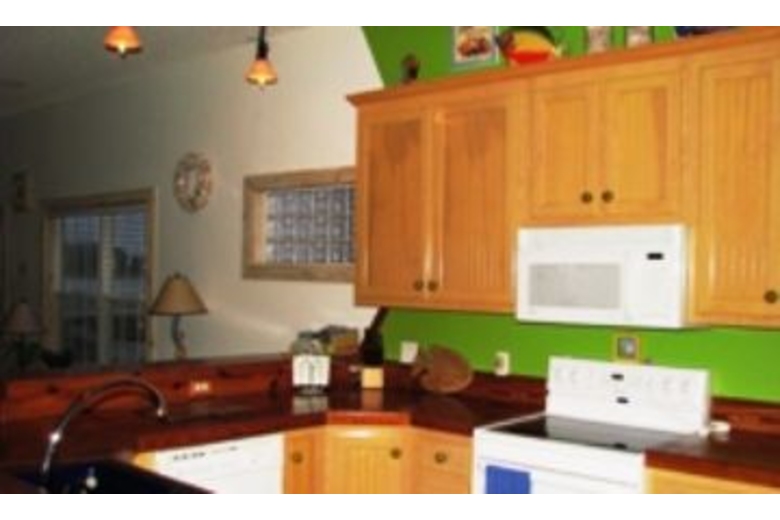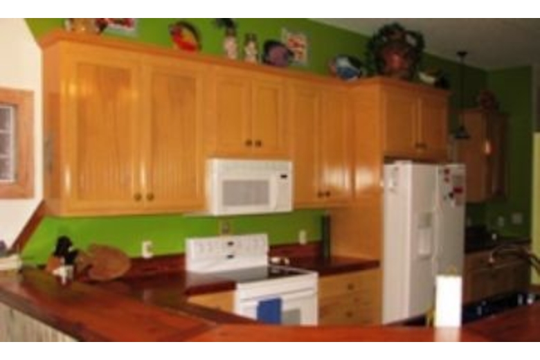 There are 4 bedrooms and 3 bathrooms in this fabulous home. Throughout the house there is 1 king sized bed, 4 queens, and 1 full, accommodating all of your guests comfortably. The main living area will be a great place for everyone to gather and enjoy one another's company, it has a TV with DVD and/or VCR player, a cozy fireplace, and access to the deck. You will have everything you need to make delicious home made meals in the fully equipped kitchen. The dining table can seat 6 people and there are 4 bar stools at the breakfast bar. There is internet access, a washer and dryer, an elevator and a telephone for your convenience.Surrounding Description