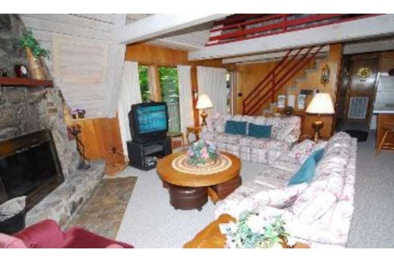 Although this home is surrounded by a lush wooded area, it is only minutes from downtown Gatlinburg. This authentic A-frame chalet has a large deck with a breathtaking view of the mountains. Inside you will find an open and spacious floor plan. It is nicely decorated and you will comfortable and relaxed the moment you walk through the door.Surrounding Description